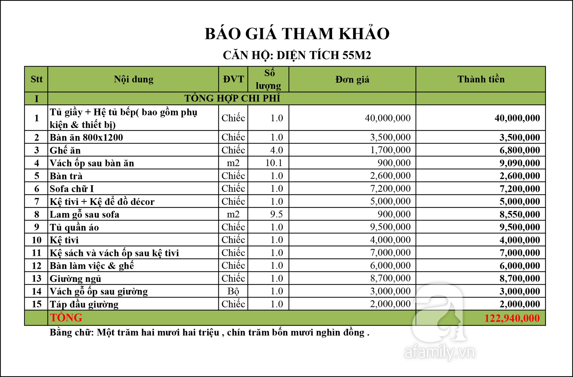 Chỉ với khoảng gần 123 triệu, căn hộ 55m² sẽ đẹp hiện đại, tiện ích với nội thất ấn tượng nhờ sự tư vấn thiết kế của các KTS.